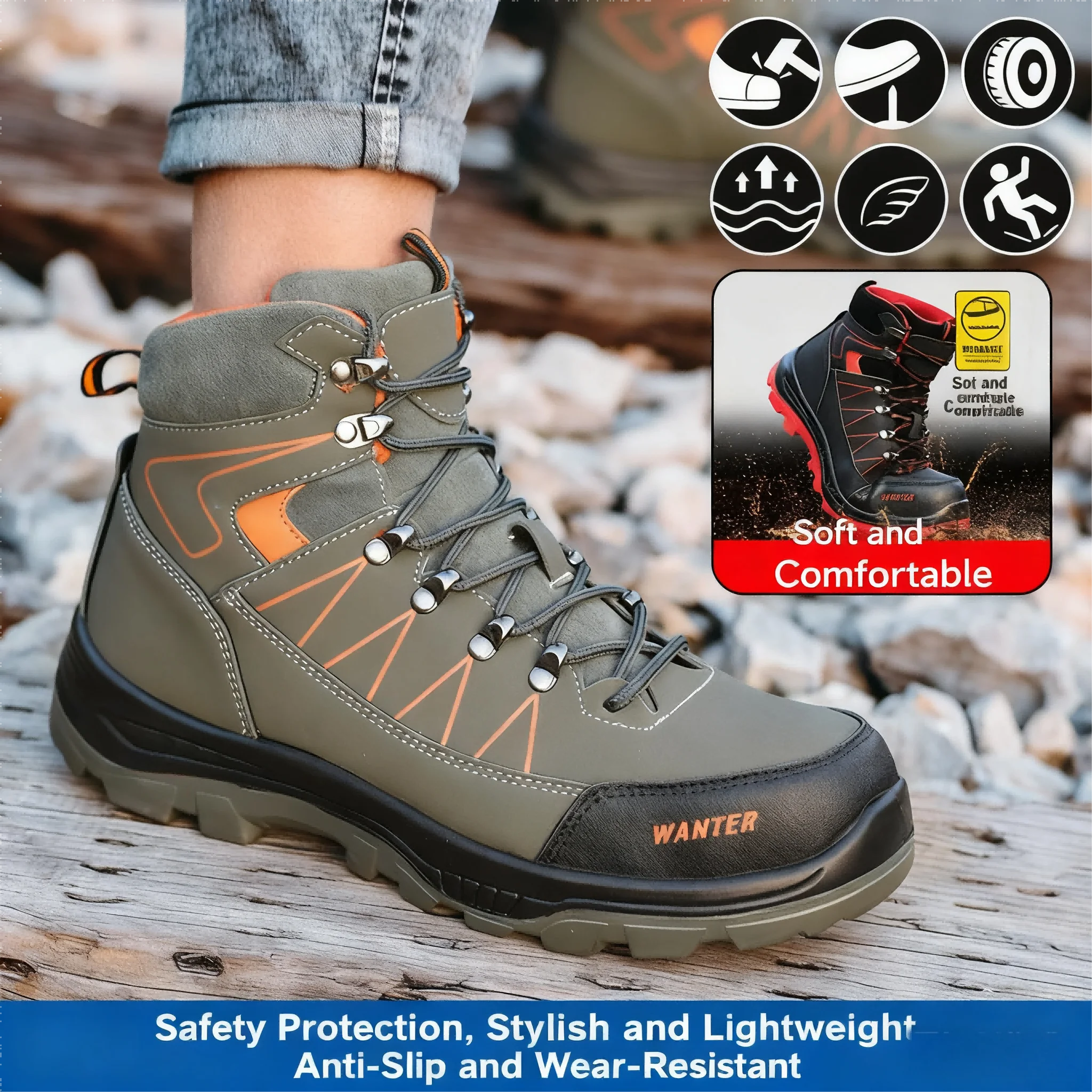 Wholesale Selling High-quality Safety Shoes Breathable Lightweight Steel Toe Safety Safety Shoes Men Green Sports Shoes